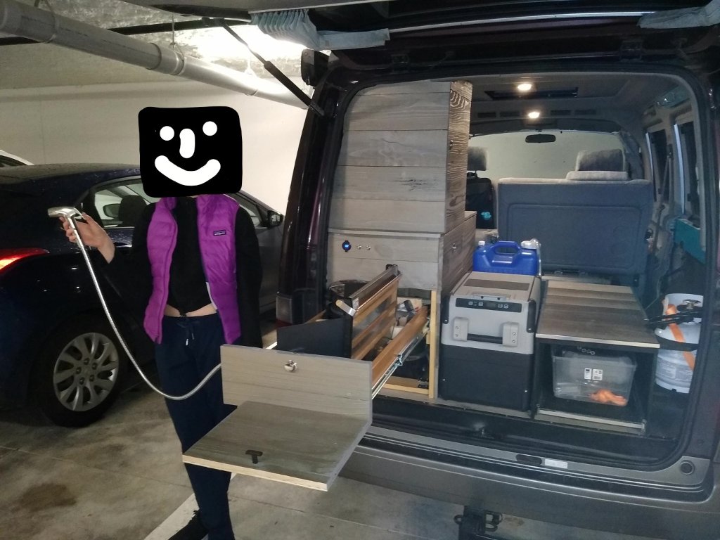It was my first van conversion project and we did all the work with only a jigsaw and battery power-drill. Definitely some areas of imperfection and things I would do differently in hindsight, but overall pretty functional!