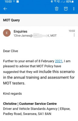 Due to the current lockdown and having to be extremely cautious because of my wifes lack of immunity as a result of a cancer operation I didn't feel happy travelling 20 miles to the regular garage I normally use for an MOT. A local garage that I have used before for a different vehicle offered collection and delivery. So for today I arranged an oil change and MOT. When my V6 was collected, I breifly outlined the contents of this post, to get the reply I am sure our inspector is aware of this. A few minutes before closing time I received a phone call, probably from the receptionist to say everything was fine apart from the emissions which they will probably sort out tomorrow by giving it a good run. She could not tell me the readings as they were just about to close.