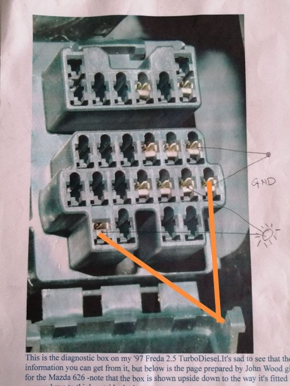 On the diagnostic box I connected the +B (switched battery voltage) with the GND (Ground)…picture below the connection i have made is the orange ligne.