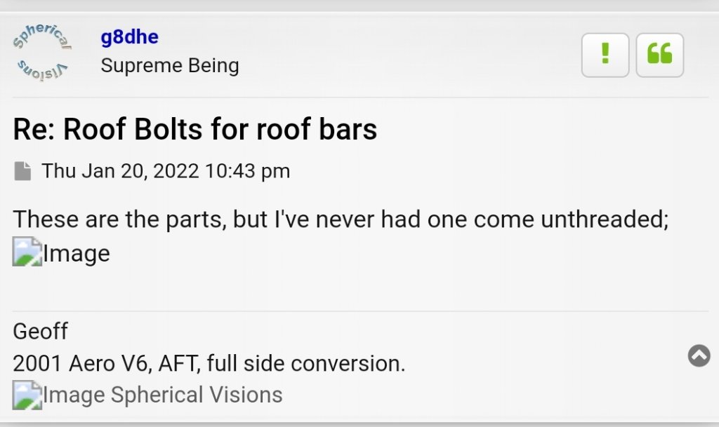 Re: Roof Bolts for roof bars