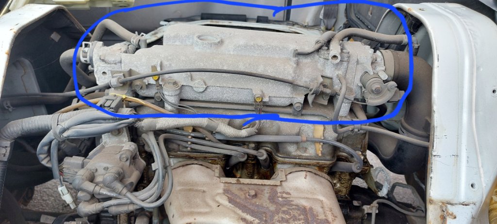 The rocker cover is under the circled area I've seen videos of replacements being done on the 2.5 diesel and it doesn't seem to have this manafold stuff above that mine has.