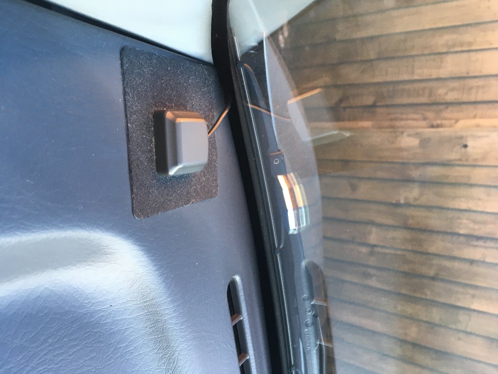Some times the ones in that corner are connected to the headlights and automatically dim them when it sees the brake lights of the car in-front shining, they normally have a small adjustment wheel on the side, the headlight wiring loom has access built into it for these devices, quite common in Japan.