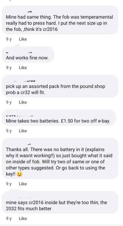 Dont suppose you still need the fob do you? And out of interest what aftermarket alarm did you go to?nth wrote: Wed Feb 15, 2023 10:40 am I had the same fob on mines till i changed it to an aftermarket alarm but just opened it & it has a CR2025 in it.