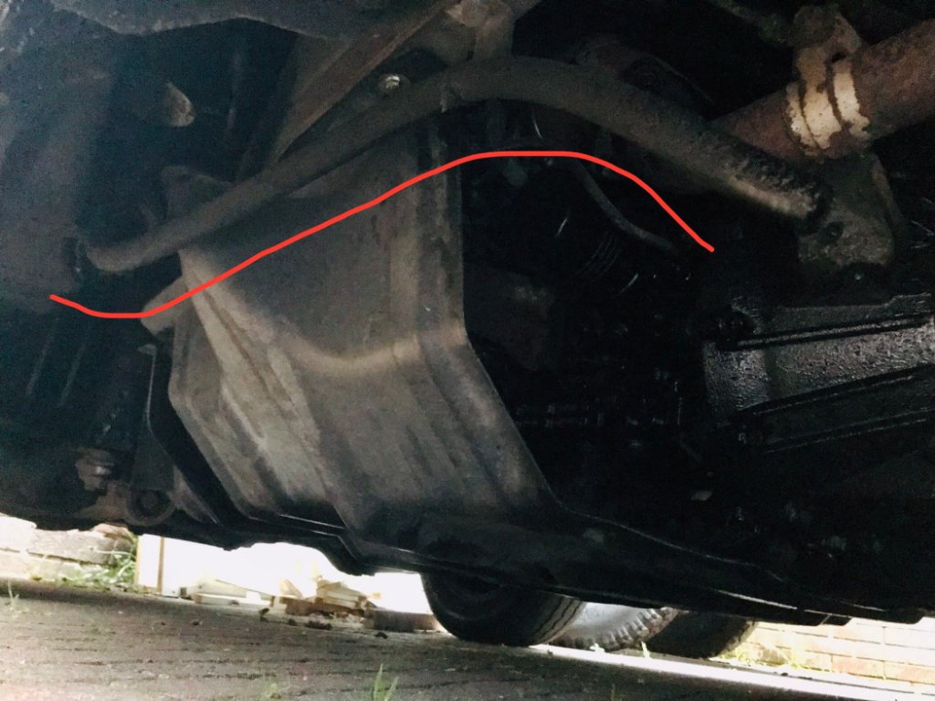 1) I grazed the attached pipe on the kerb going onto my drive. Located half-way down the driver's side. It was spurting warm, pink fluid (circled) under pressure. What is it? Coolant? If so, where is it going that far back? ATF? With some brute ...