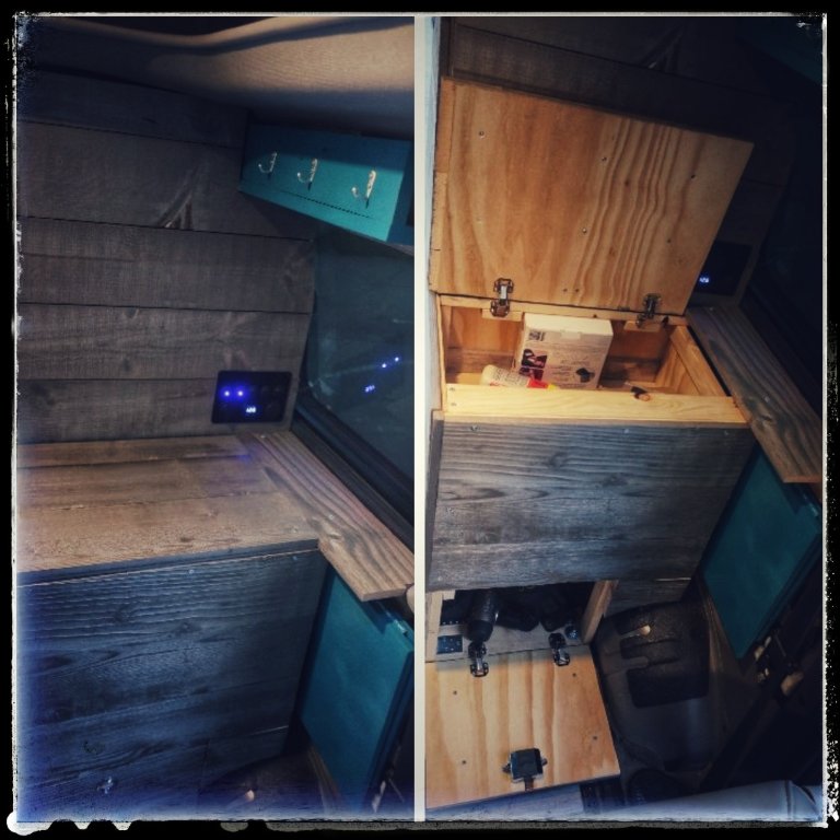 It was my first van conversion project and we did all the work with only a jigsaw and battery power-drill. Definitely some areas of imperfection and things I would do differently in hindsight, but overall pretty functional!