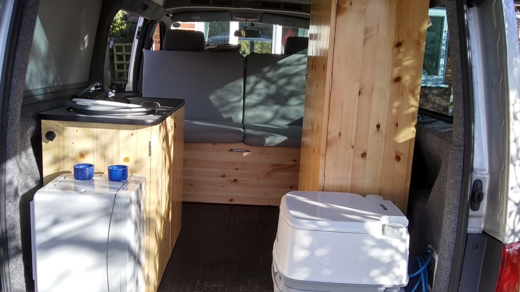 The cupboard door open on to the sink and does the job I could say that was my design genius but I would be lying ,I bought the mattress and worked from there to fit things in the conversions you can buy are very expensive and are MDF