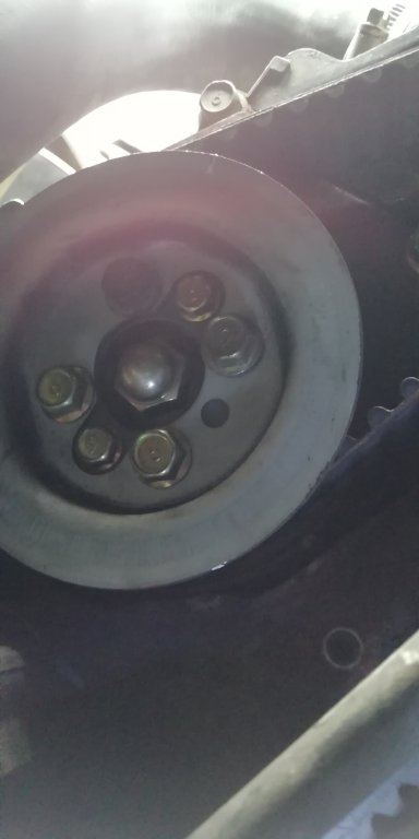 I've got to the point where I'm about to separate pump from pulley but I have 6 bolts to choose from.