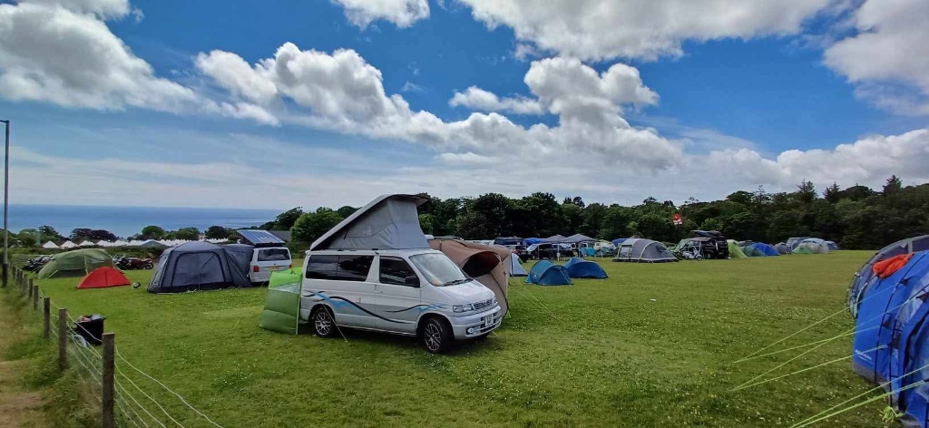 It’s normally home to Onchan FC, but Colin and the team there do a great job. They have a whole field full of pre-erected Bell Tents, and two other fields where a mixture of bikes and vans set themselves up.