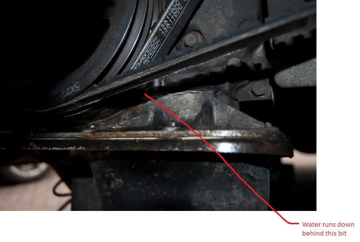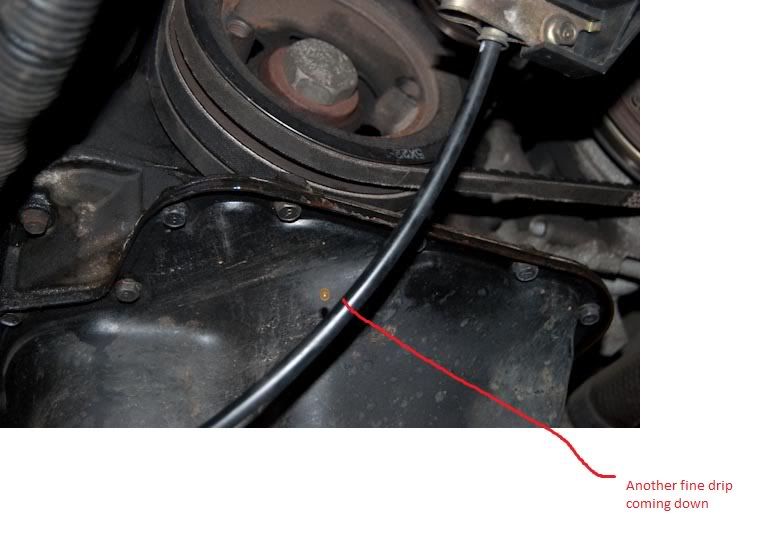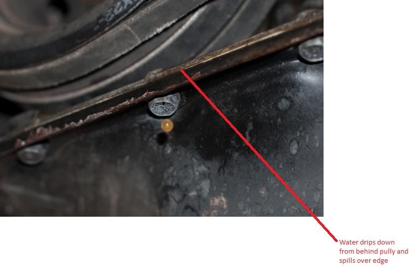 I've read through a few posts now but still unsure on where to start troubleshooting, When I fill up the water/coolamnt reservoir under the bonnet (Top right) after a minute the wate starts to drip from out under the alternator belt area, (The engine is not turned on at this point), I've had a good look round underneath, and the water appears to be running down the crankshaft area and behind the crankshaft pully, it then starts dripping over the edge......