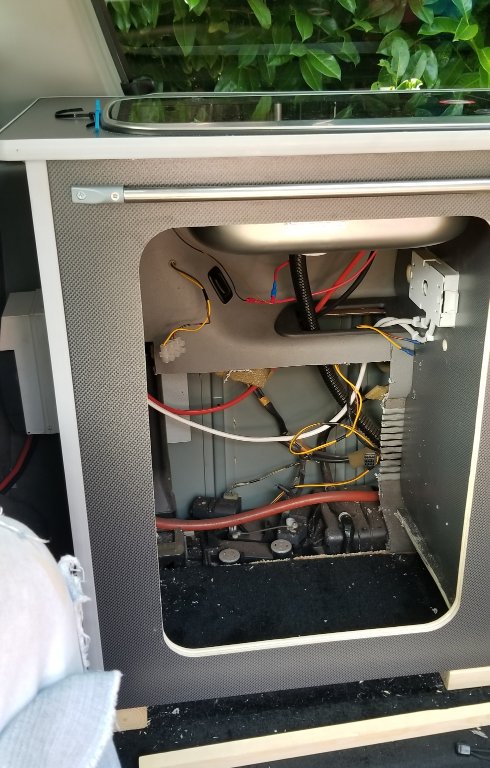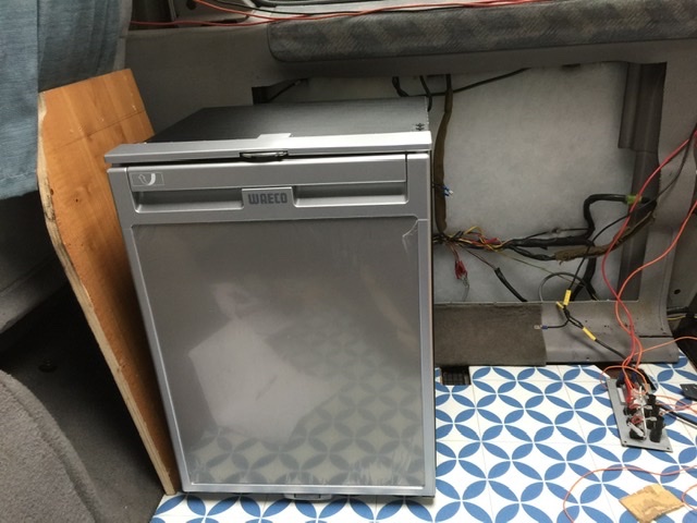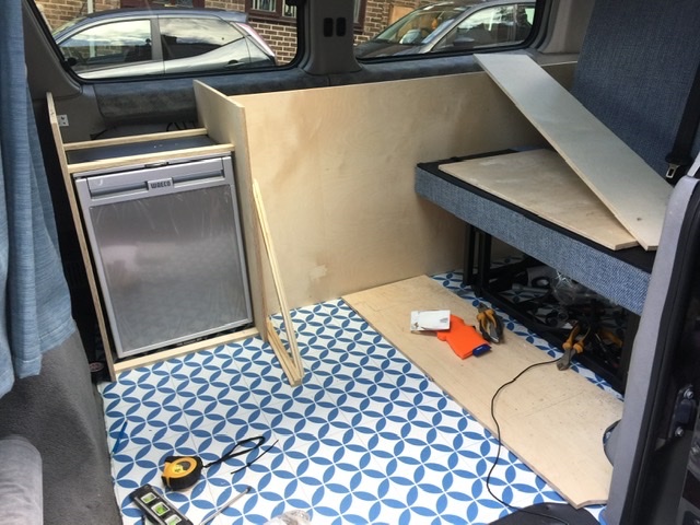I'm *wanting* to fit a fridge where the left hand cupboard is in the kitchen of my bongo. It'll go under the sink, and it just fits height wise.